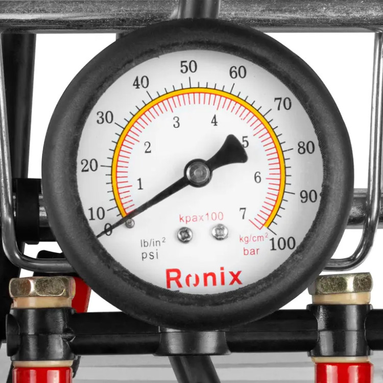 تلمبه پایی دوسیلندر رونیکس مدل RH-4202 به دو سیلندر قوی و آبکاریشده مجهز است تا باد را با فشار 5 بار تولید کند.