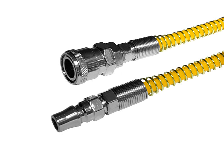 این شیلنگ فنری به طول 10 متر و قطر داخلی 5 میلی متر و قطر خارجی 8 میلی متر می باشد و حداکثر فشار 100 PSI را تحمل می کند. این محصول دارای کوپلینگ 20SP از جنس فولاد با روکش بسیار مقاوم در برابر خوردگی و فشار بالا و همچنین دارای کوپلینگ 22PPA از جنس فولاد با روکش بسیار مقاوم در برابر خوردگی و فنر است.