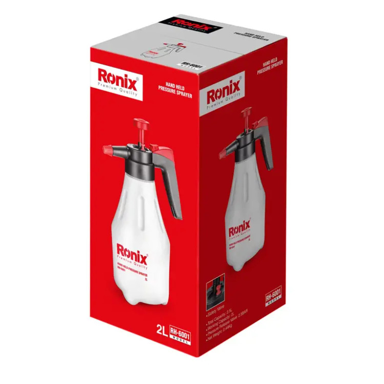 سمپاش دستی 2 لیتری رونیکس مدل RH-6001 با مخزنی شفاف ساخته شده از جنس پلیاتیلن است؛ ابزاری کاربردی با نازلی از جنس برنج که در دو حالت افشانی و مستقیم امکان پاشش دارد. این سمپاش دستی با طراحی ارگونومیک و وزن کم، امکان کار طولانی مدت را برای کاربر فراهم میکند.