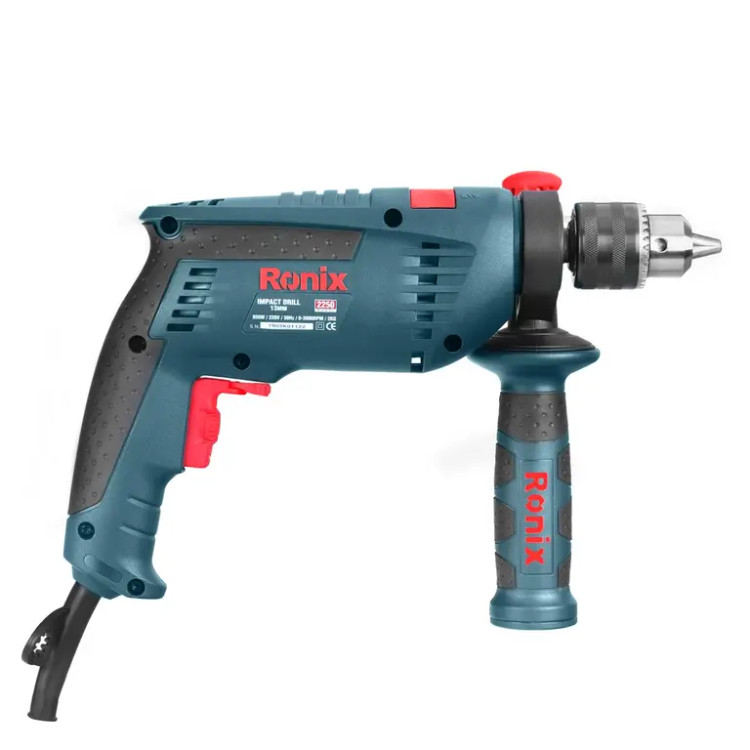 دریل برقی مدل 2250، یکی از قدرتمندترین دریلهای چکشی رونیکس، دارای موتور مقاوم و صنعتی 850 وات، طراحی ارگونومیک و پوشش خوشدست در بدنه بوده و در ساخت آن، دقت و کیفیت فوقالعاده بالایی به کار رفته است. قابلیت استفاده از این محصول در دو حالت سوراخکاری معمولی و چکشی، موتور قدرتمند 850 وات و 3000 دور، نفوذ آسان در مصالح ساختمانی بسیار متراکم چوبی، فلزی و بتنی، از مهمترین ویژگیهای این دریل چکشی منحصربهفرد هستند.