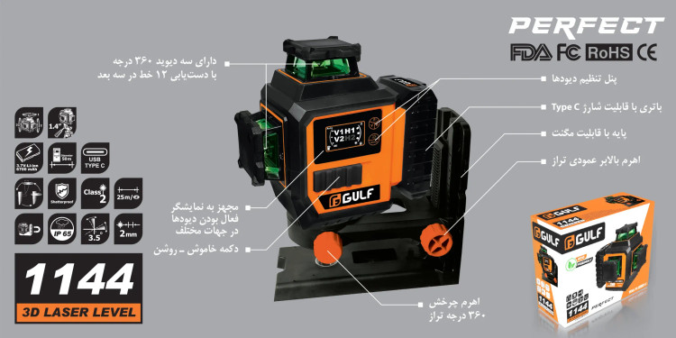 تراز لیزری 12 خط شارژی سه بعدی نور سبز مدل 1144 گالف