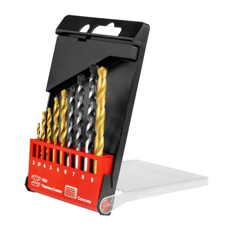 - مجموعهای متنوع از متههای مخصوص سوراخکاری در بتن و سوراخکاری معمولی با روکش تیتانیوم