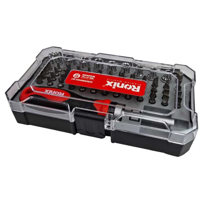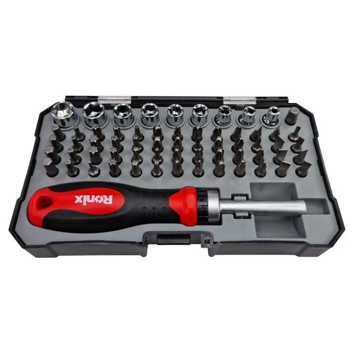 ست 64 عددی سری بیت و بکس رونیکس مدل RH-2716، مجموعهای کاربردی از سریهای پیچ گوشتی دوسو، سریهای پیچ گوشتی چهارسو، سریهای پیچ گوشتی ستارهای، سریهای پیچ گوشتی چهارسو خاردار، سریهای آلنی و سریهای بکس میباشد.