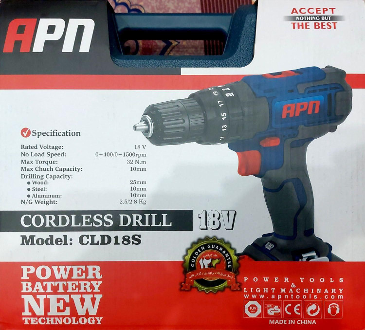 دریل شارژی ای پی ان مدل CLD 18S دارای گیربکس دوسرعته بوده و مجهز به سیستم شارژ سریع کوییک شارژ می باشد.دریل شارژی ای پی ان مدل CLD 18S مجهز به شاسی کلید گازی است و خاصیت ضد آب بودن نیز دارد.از این دریل میتوان برای سوراخکاری آهن ،چوب ،آلومینیوم و استیل استفاده کرد این محصول، یکی از محصولات شرکت APN بوده که تحت مدل CLD 18S به بازار عرضه شده است.دریل شارژی ای پی ان مدل CLD 18S از گشتاور مناسبی برخوردار بوده و قدرت خوبی دارد و همینطور اینکه وزن مناسبی نیز دارد. سرعت چرخش دریل شارژی ای پی ان مدل CLD 18S در حالت آزاد 400 تا 1400 دور بر دقیقه است. این دستگاه انرژی مورد نیاز خود را از باتری لیتیوم یونی تامین میکند و برای این منظور به دو باتری با ظرفیت بالا مجهز شده است. لازم به ذکر است طراحی ویژه، دریل شارژی ای پی ان مدل CLD 18S سبب میشود وزن دستگاه کم به نظر برسد و البته نباید از حجم بسیار مناسب آن هم غافل شد. همچنین طراحی ارگونومیک به همراه روکش ویژه پلاستیکی هم سبب شده کار کردن با دستگاه، آسانتر شود.
