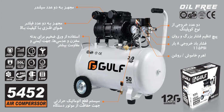 کمپرسور سایلنت 50 لیتری تک موتور 2 اسب مدل 5452 گالف