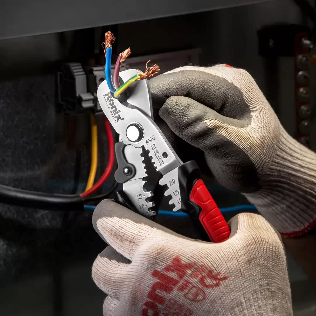 یک ابزار کارآمد چند منظوره برای لخت کردن سیم ها تا قطر 2.6 میلیمتر،برش کابل و سیم تا قطر 2.6 میلیمتر و پرس کردن سر سیم ها تا سطح مقطع 2 میلیمتر