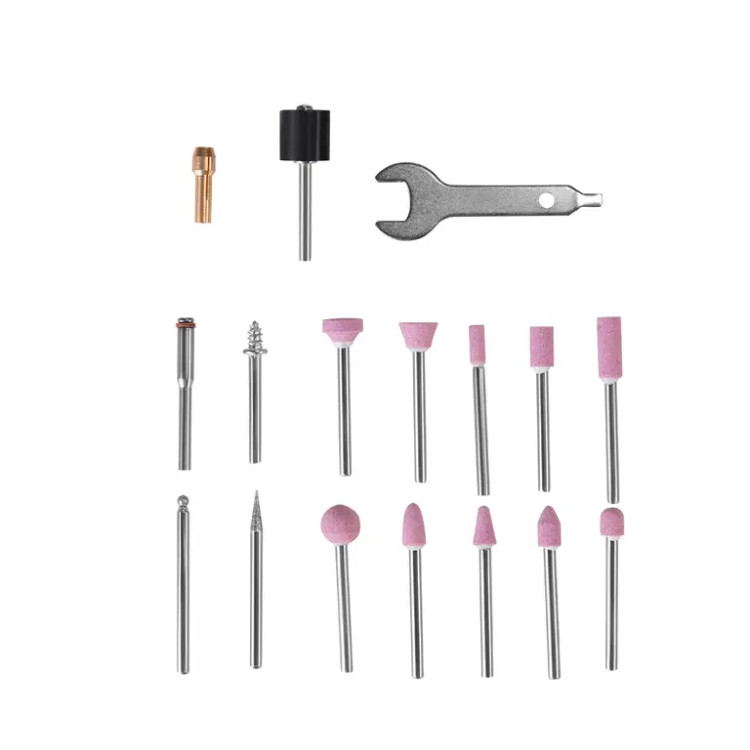 | متعلقات | 40 عدد لوازم جانبی ( یک عدد شفت سنباده : 3.2 میلی متر ، دو عدد سنبه : 3.2 میلی متر ،دو عدد مته : 2.3/3.2 میلی متر ، دو قطعه الماس : 3.2 میلی متر ،یک عدد سنگ سنباده ، آچار ، دو عدد کولت : 2.3/3.2 میلی متر ،چهار عدد سنباده انگشتی ، هشت عدد سنگ برشی.، سه عدد کاغذ سنباده، چهار عدد نمد، ده عددسنگ سنباده با شفت 3.2 میلی متری ) |