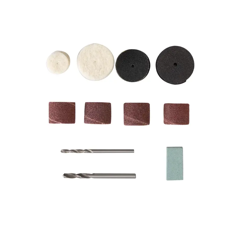 دربردارنده 40 قطعه سری و متعلقات کاربردی ابزارآلات چرخشی برای انجام فعالیتهای سنبادهزنی، برش، سنگزنی، کندهکاری، تمیزکاری، پرداخت و ...
