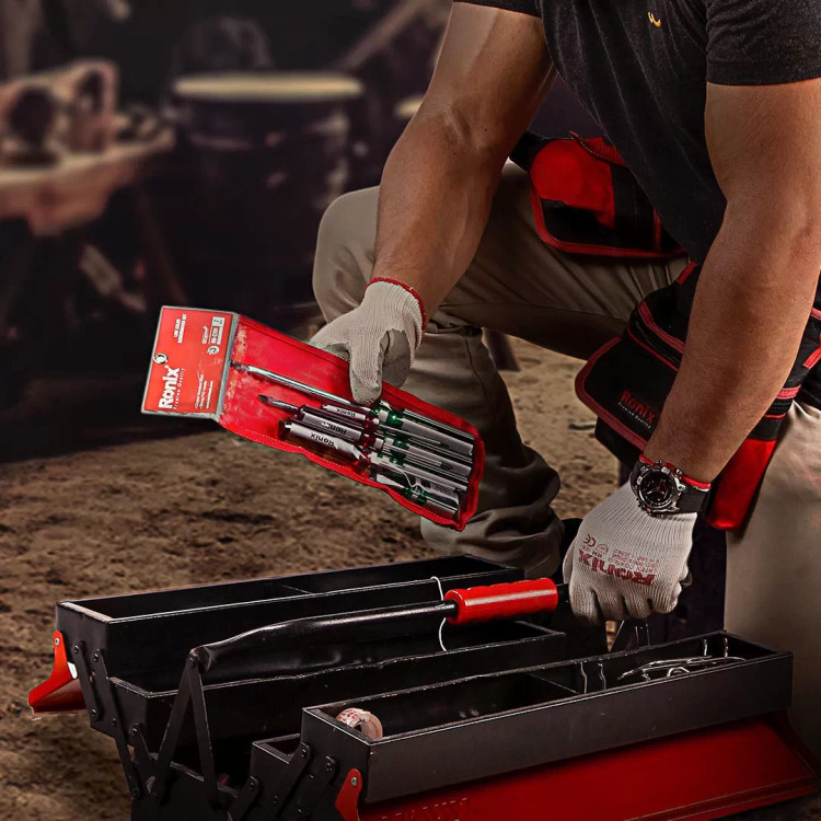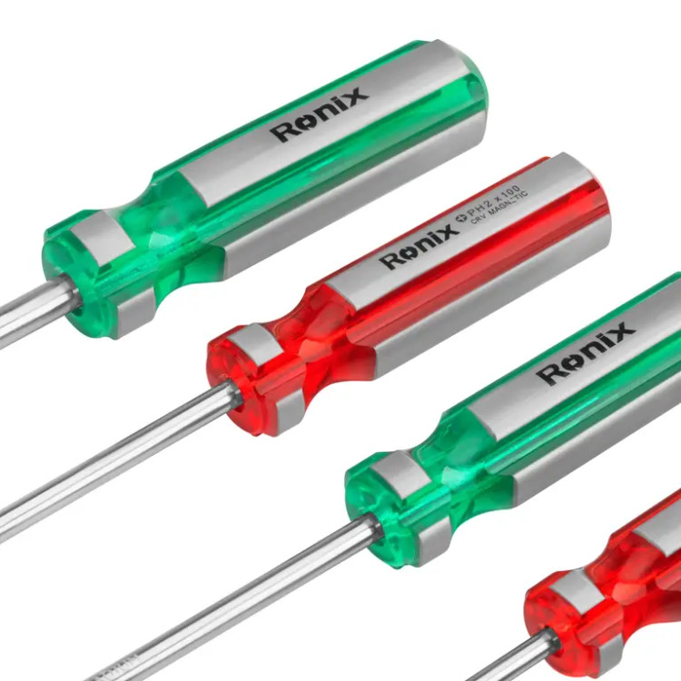 مجموعه 7 عددی پیچ گوشتی رونیکس مدل RH-2701 از 4 عدد پیچ گوشتی دوسو و 3 عدد پیچ گوشتی چهارسو تشکیل شده است که همگی دارای سری آهنربایی و بدنه از جنس آلیاژ کروم-وانادیوم هستند.